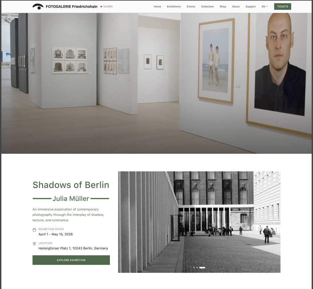 Client: Fotogalerie Friedrichshain – A first photography gallery in Berin serving Berlin and international audiences.