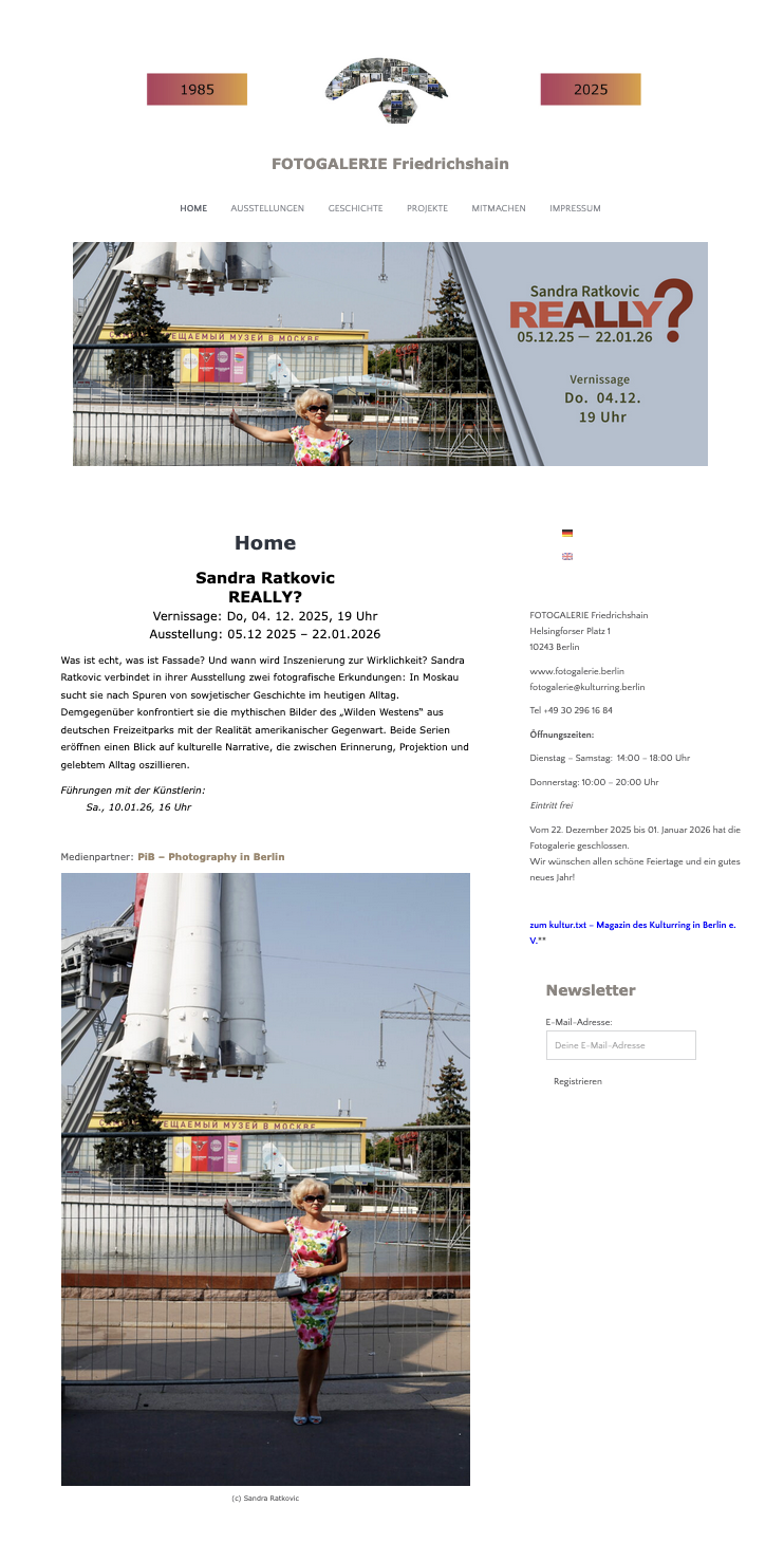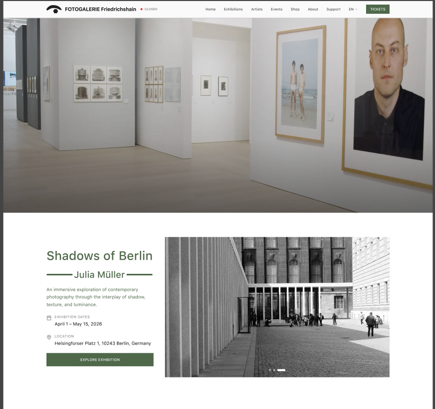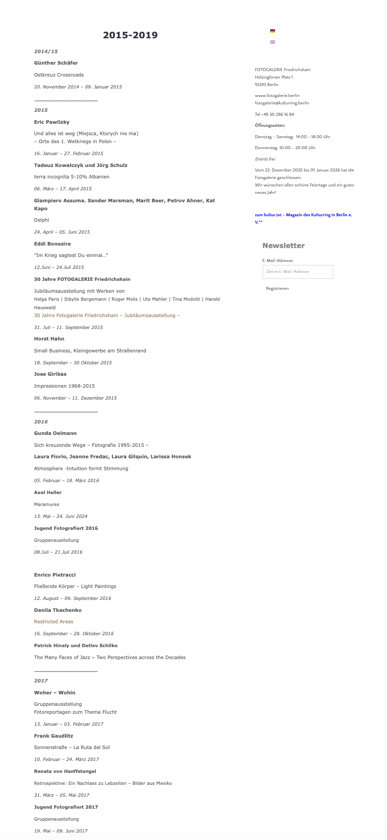 Client: Fotogalerie Friedrichshain – A first photography gallery in Berin serving Berlin and international audiences.
